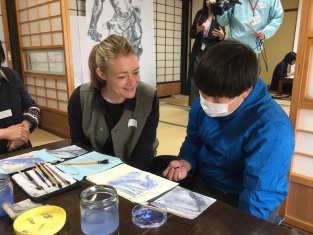 オランダからはるばる仁王像の故郷に来られたイェッケさんと町内の方々、島デ学生の合作です。
