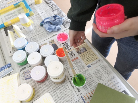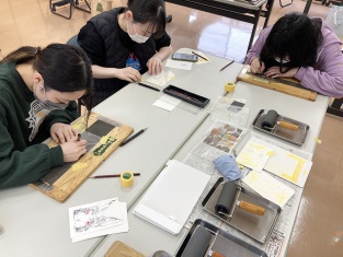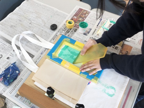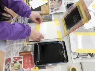 古い印刷技法である孔版(こうはん)を手作業で行い、印刷の面白さを知る授業を行いました。