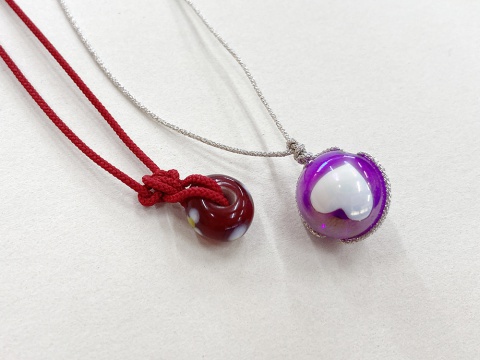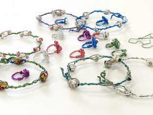 石ビーズ、トンボ珠、ガラス珠をアルミワイヤーや紐を使い、リング、ペンダント、ネックレス、ブレスレットなどを作製していきました。